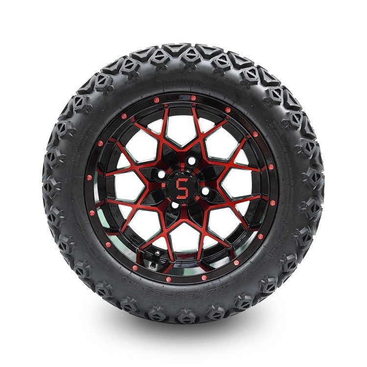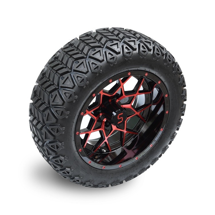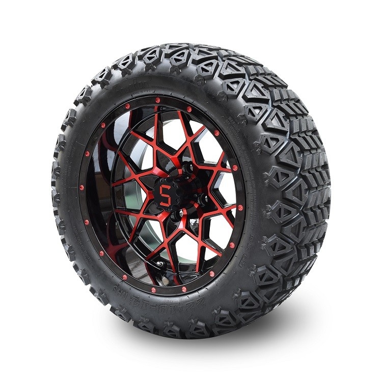 گلف کارت 14 اینچ چرخ قرمز / سیاه درخشان و 22 اینچ لاستیک کامبو
